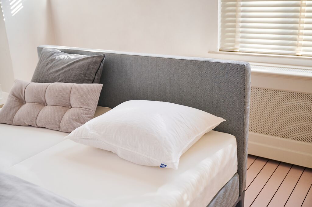 De Criade is met haar ranke lijnen en verfijnde details een slanke boxspring met een kenmerkend design. Het stalen frame draagt het design en de horizontale lijn verbindt de twee boxsprings.